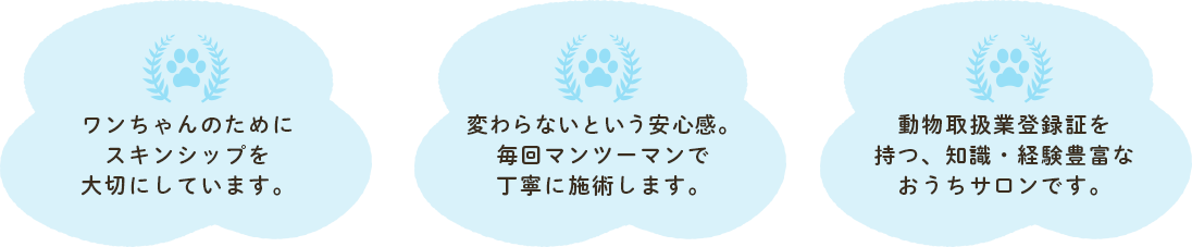 当店では、そんな大切な時間をワンちゃんにリラックスしてもらう時間として使っていただきたいと思っています!